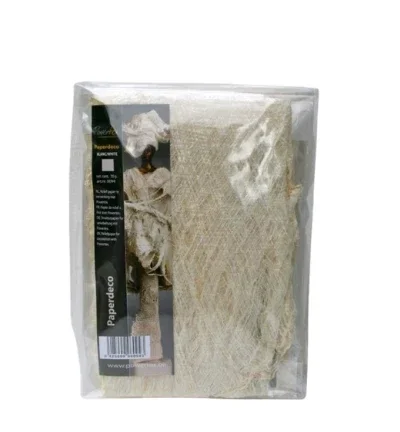 Gedroogde moerbeiboomschors, kan rechtstreeks in Powertex worden ondergedompeld. Powertex goed in de vesels wrijven, opentrekken en aanbrengen op het gewenste oppervlak.