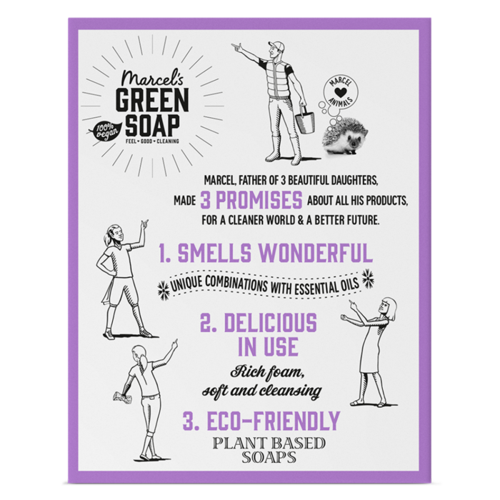 Marcel’s Green Soap handzeep bar Lavendel & Rozemarijn is plasticvrij, vegan, superzuinig en reinigt nóg beter dan vloeibare handzeep.