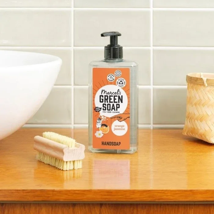Marcel's Green Soap Handzeep Sinaasappel & Jasmijn is gemaakt van plantaardige zepen, minstens 97% biologisch afbreekbaar én verrijkt met essentiële oliën en extra glycerine voor zachte handen.