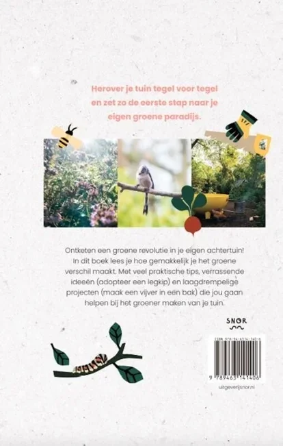 Ontketen een groene revolutie in je eigen achtertuin. In dit boek lees je hoe gemakkelijk het groene verschil maakt. Met veel praktische tips, verrassende ideeën (adopteer een legkip) en laagdrempeligo projecten (maak een vijver in een bak) die jou gaan helpen bij het groener maken van je tuin.
