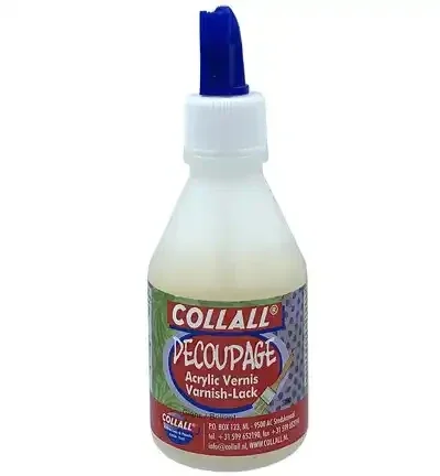 Transparante vernis/fixatief voor het watervast aflakken van decoupage decoraties. Hecht op papier, karton, textiel, canvas, hout, steeen en diverse kunststoffen. Verwerken met zachte kwast, sponskwast of roller.